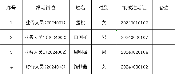 根據(jù)《關(guān)于亳州市譙城區(qū)魏武工程管理咨詢有限責(zé)任公司2024年工作人員公開招聘》精神,經(jīng)筆試、面試、體檢、考察等環(huán)節(jié),確定孟桃等4名同志符合本次招聘條件,現(xiàn)予以公示。