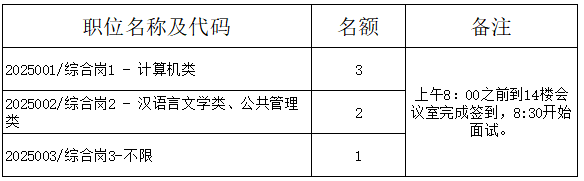 三、面試時(shí)間、崗位/地點(diǎn)及準(zhǔn)考證打印時(shí)間: