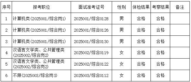 根據(jù)《2025年亳州市譙郡產(chǎn)業(yè)投資集團有限公司外包崗位公開招聘公告》相關(guān)規(guī)定,現(xiàn)將擬入圍對象體檢、考察結(jié)果公示如下: